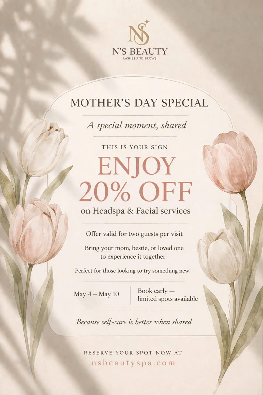 This May, give your mom (and yourself) a meaningful gift – the gift of relaxation and self-care. To celebrate Mother’s Day, N’s Beauty – Lashes & Brows is offering an exclusive limited-time promotion: ENJOY 20% OFF Applicable to: A Special Moment, Shared This isn’t just about beauty – it’s about connection: Offer valid for two […]